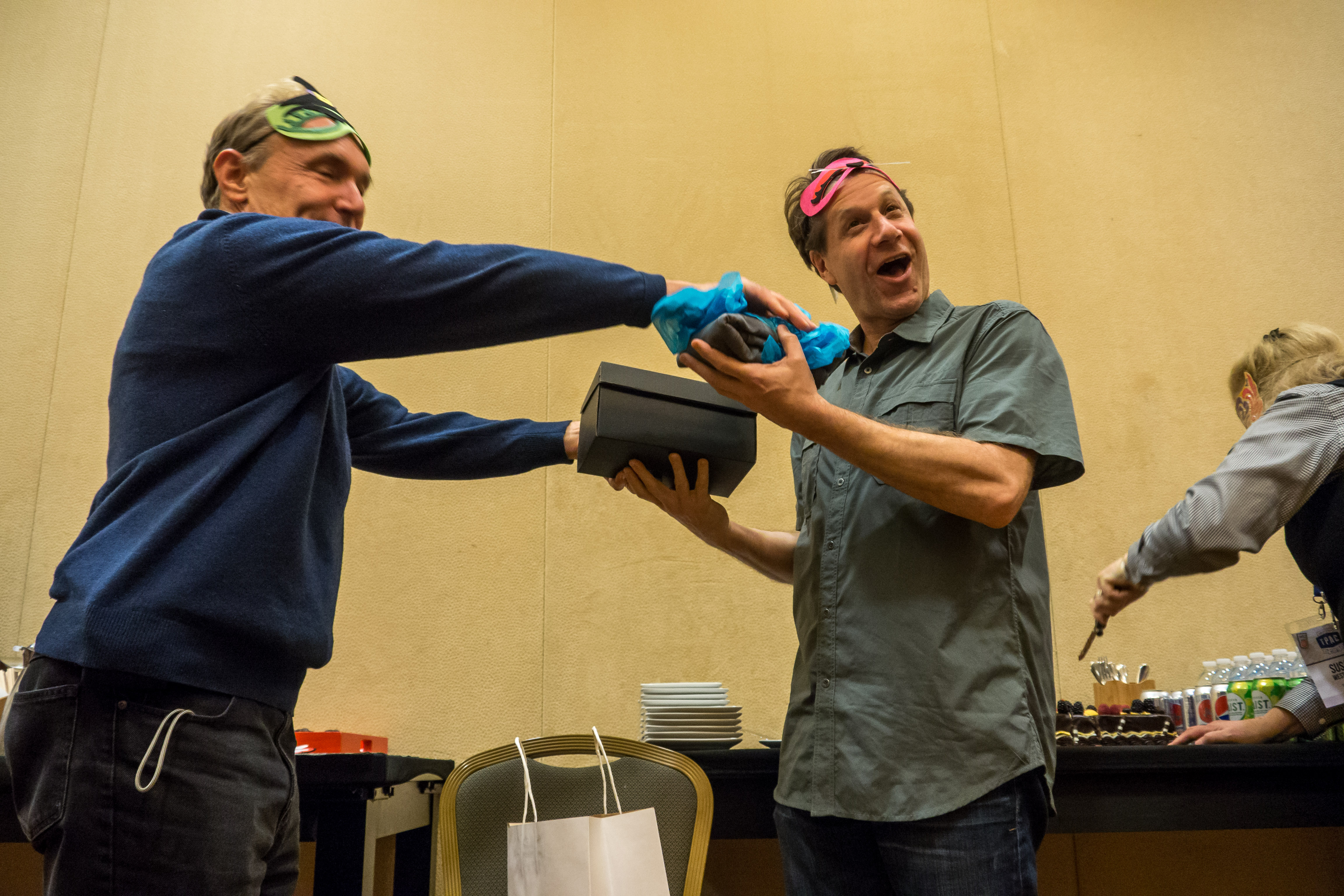 We held a party with chocolate cake and Halloween masks, a few weeks ahead of Ian's birthday, since a lot of the W3C team was gathered in Santa Clara for TPAC 2014.