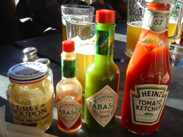 Moutarde, Tabasco, Jelapeno sauce, Ketchup