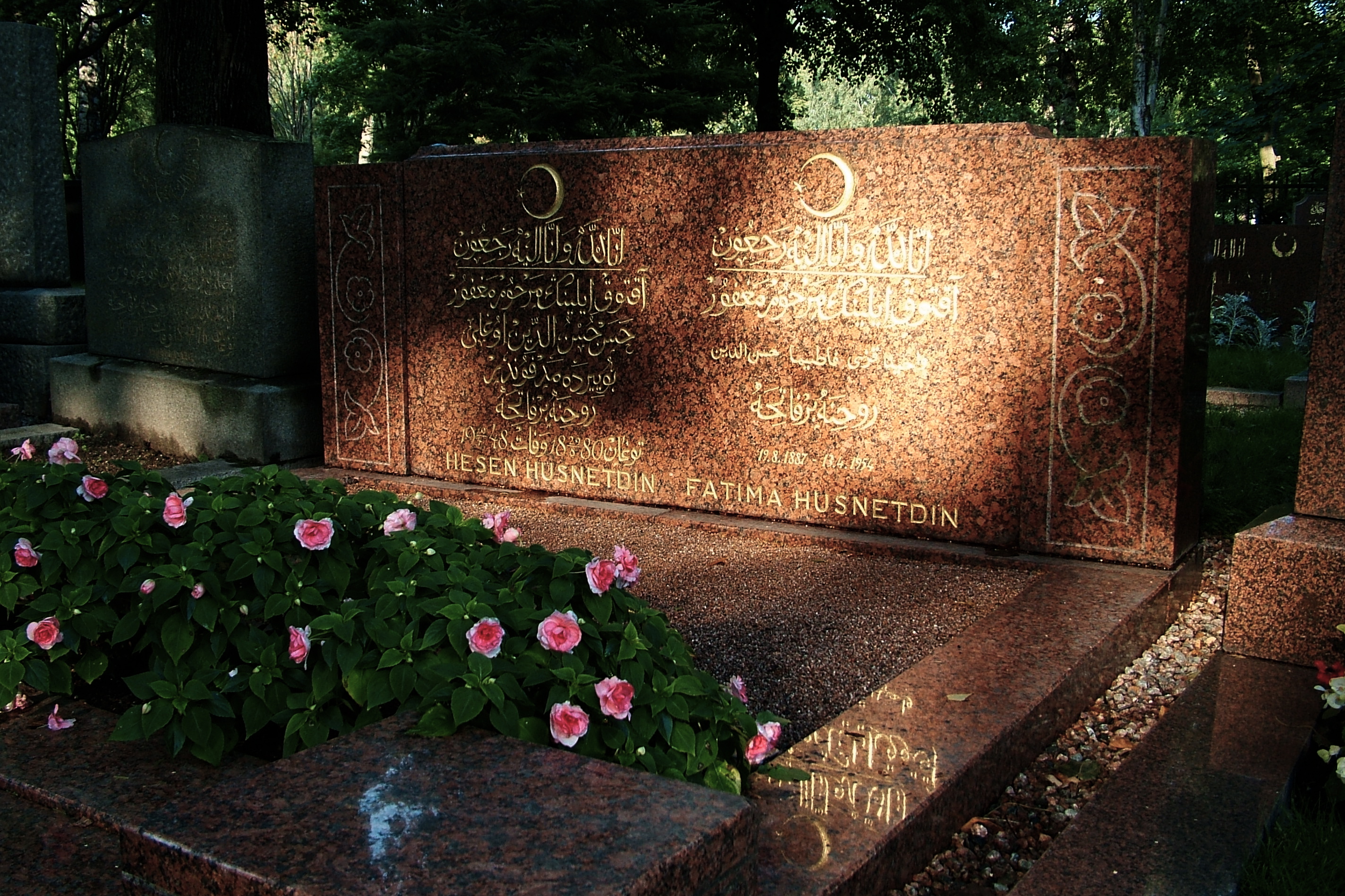 Golden arabic letters at sunset.