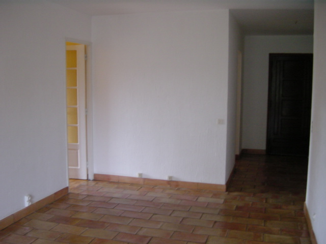 Vue sur l'entree de la cuisine (porte a gauche) et l'entree a droite
