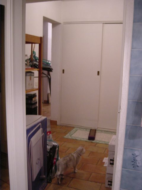 Vue depuis la salle de bain sur le hall et le dressing ferme'