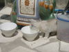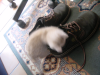 Various photos of Emu at home and the way she behaves with shoes, Jackie Chan and friends.