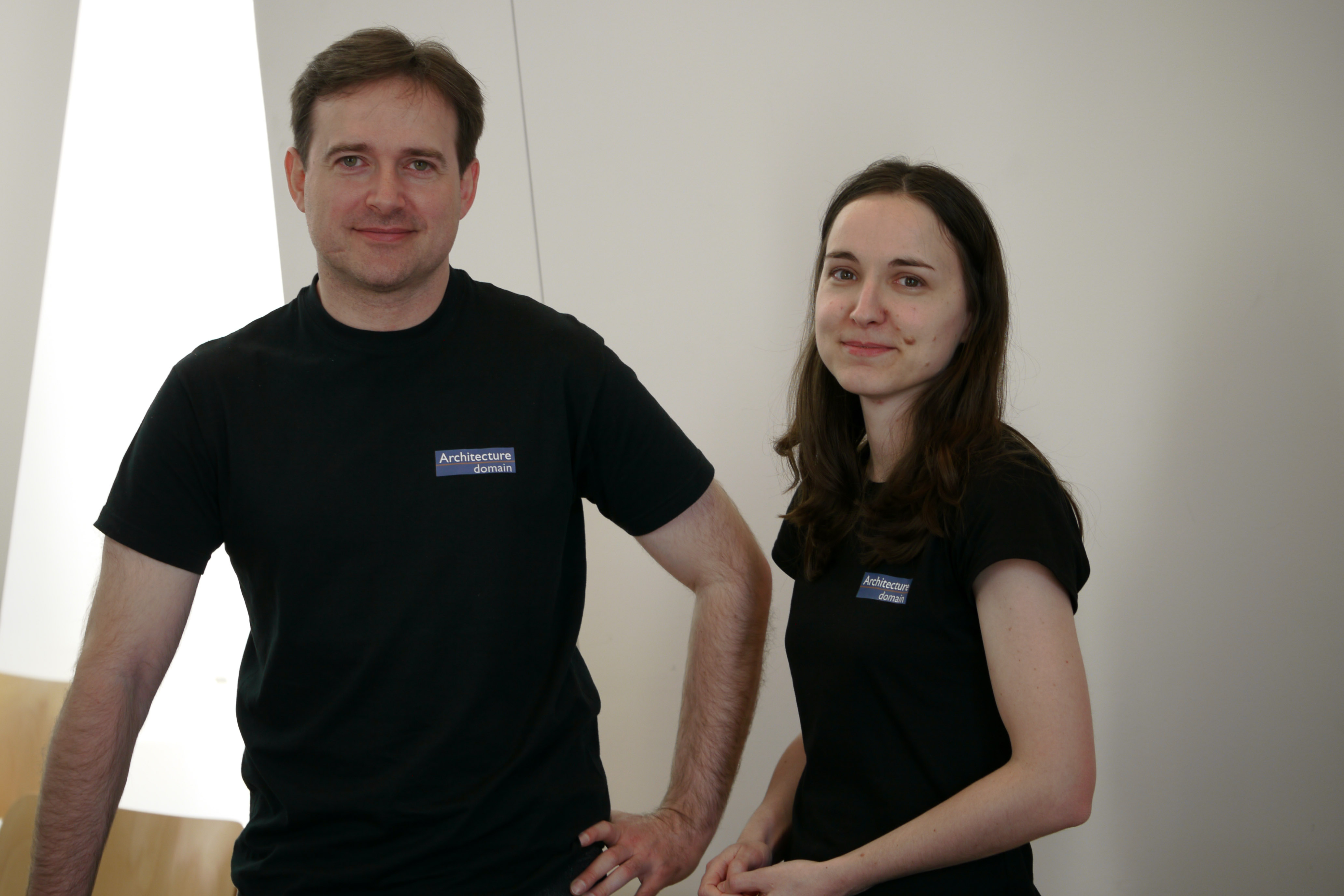 Yves & Carine wearing a "Architecture domain" t-shirt.