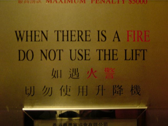 Sign saying "when there is a fire do not use the lift"