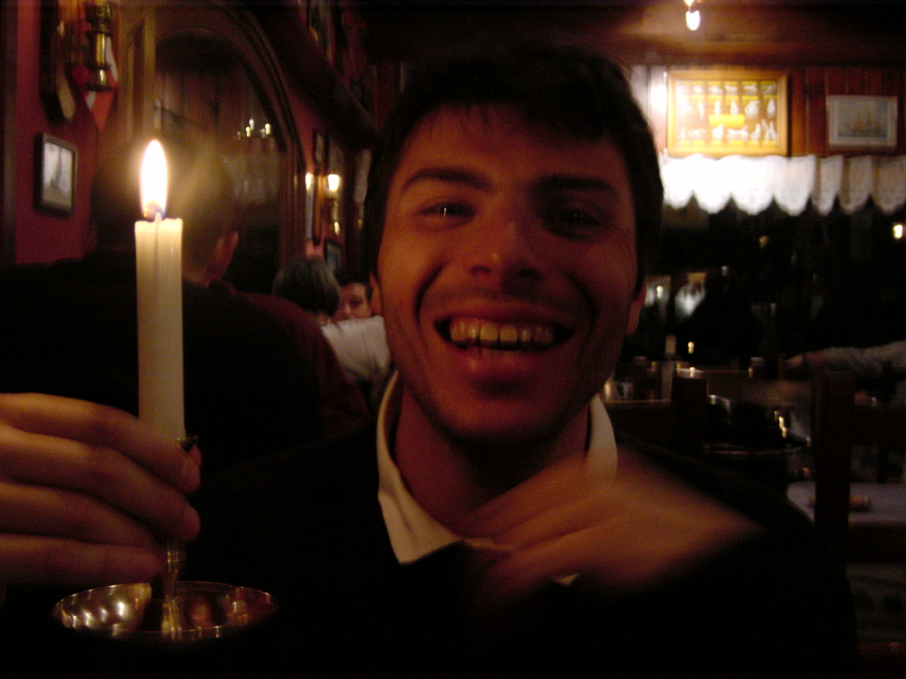 Neurone eclaire a la bougie qu'il tient de sa main droite