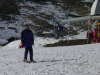 Depart sous la neige: Bi, Fredo et Pticul qui pointe un flocon sur son pull