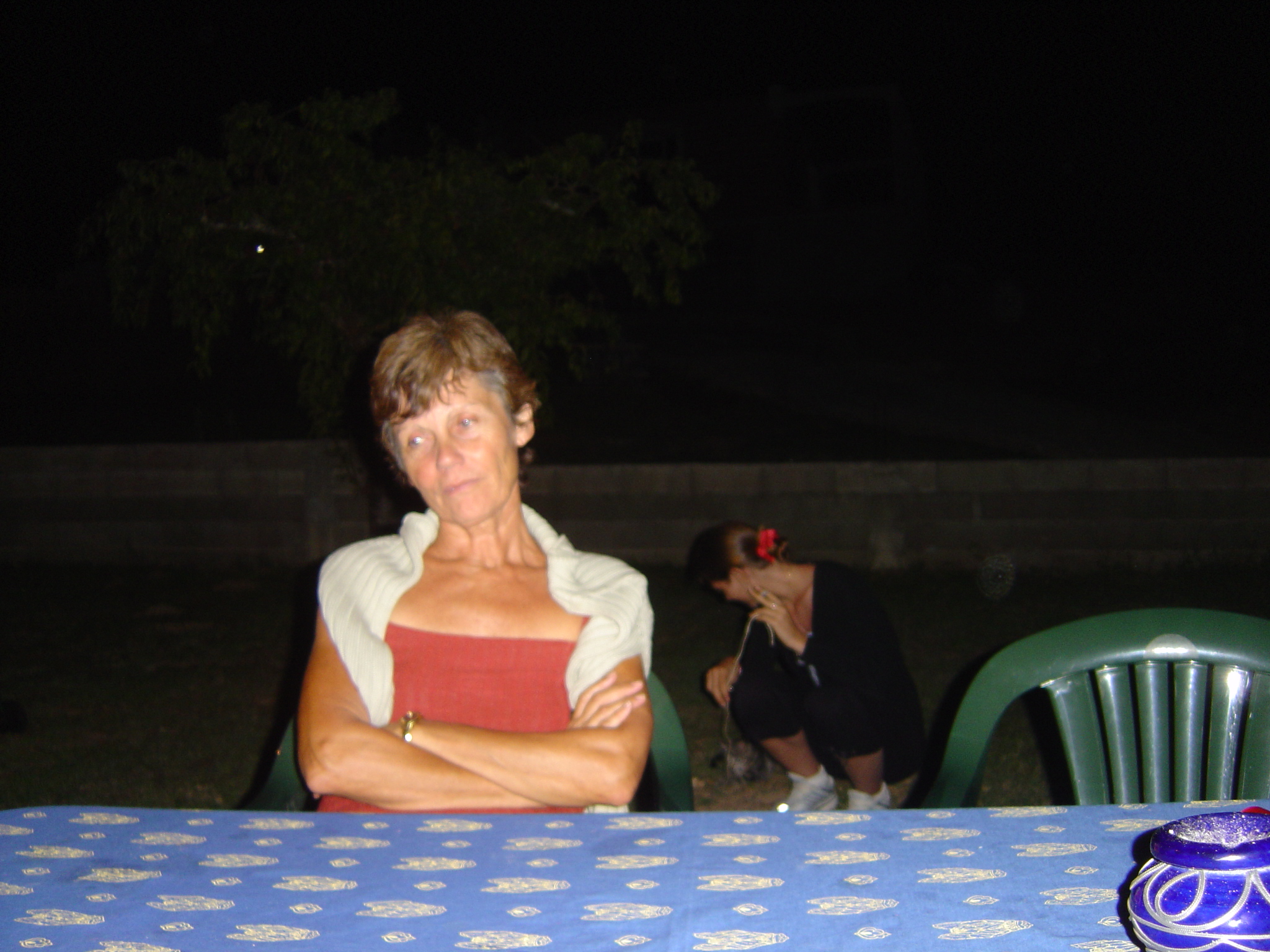 Evelyne, l'air pensif et au fond Coralie joue avec Bubulle