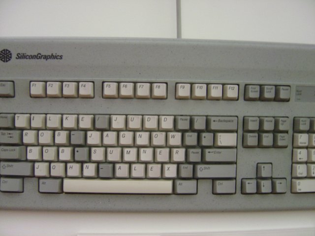 Keyboard (dangling next to an office door) arranged with names of occupants