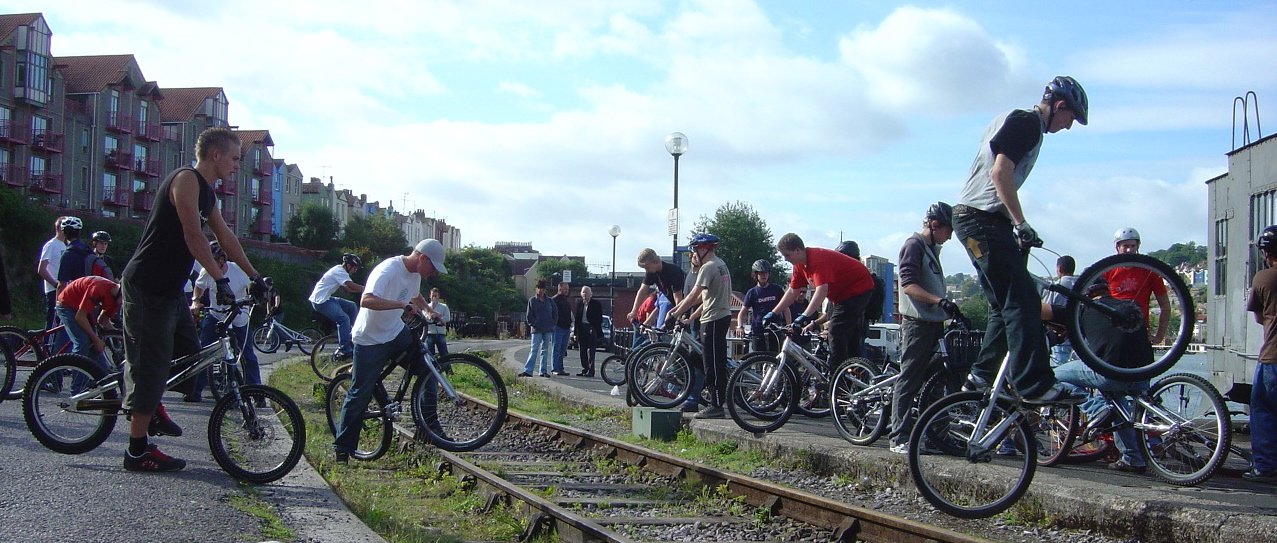 Bikers on the railtracks by the harbour