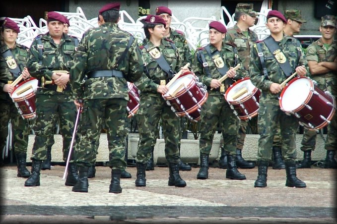 Soldiers ready with their drums on Plaza Mayor