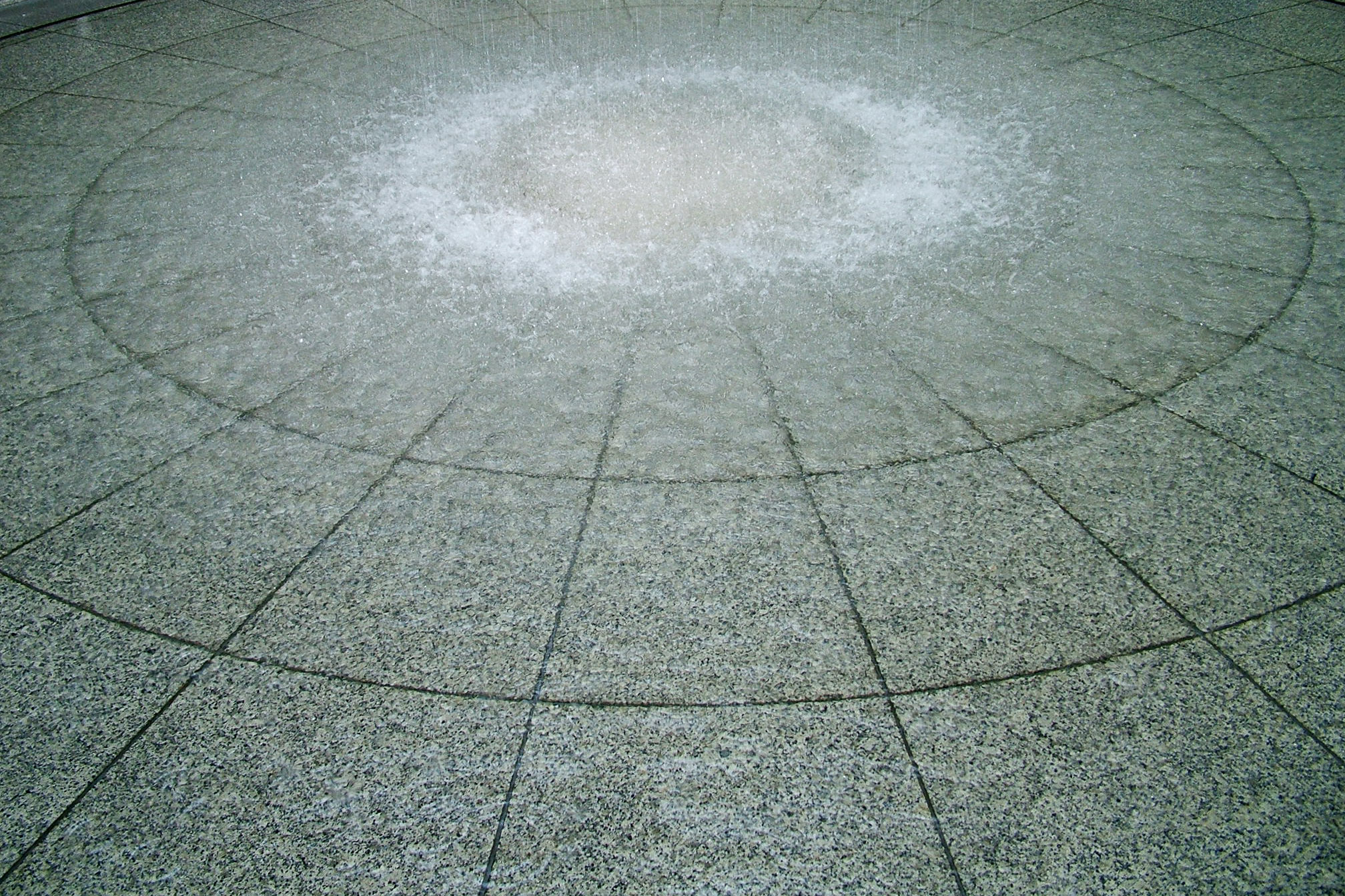 The water falls in shower inside the Tokyo Fashion Town building lobby.