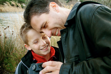 Vlad and Renaud having a good laugh looking at photos Vlad took.