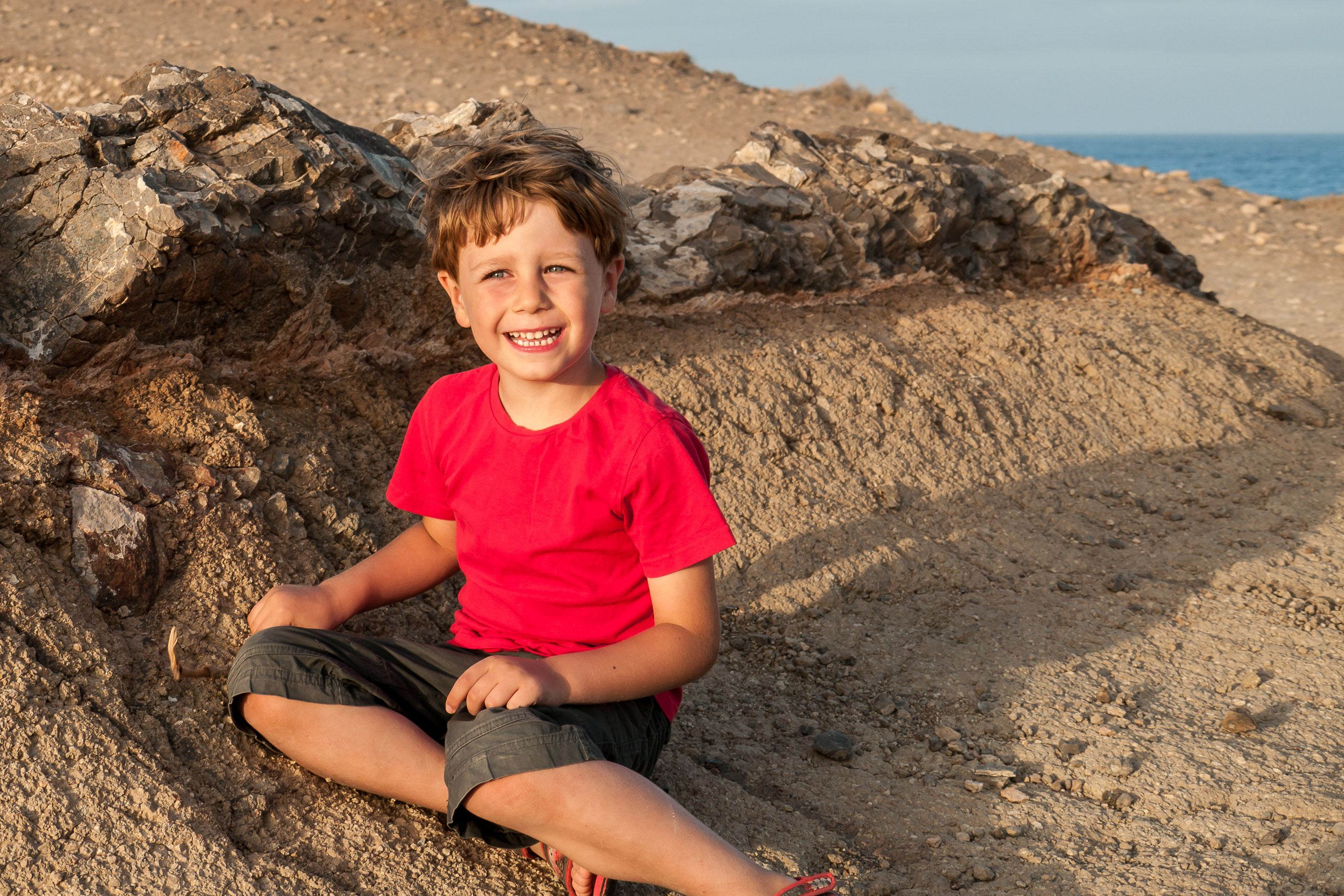 Adrien at Punta Papagayo, a long shadow behind him. He just cracked a joke, or something and he's laughing hard.